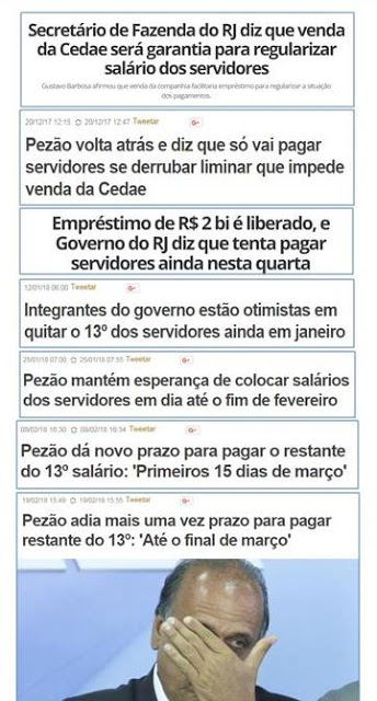 E, sim, que ninguém se esqueça de outro objetivo: salvar o (des) governador Pezão e seu cambaleante e incompetente (des) governo.