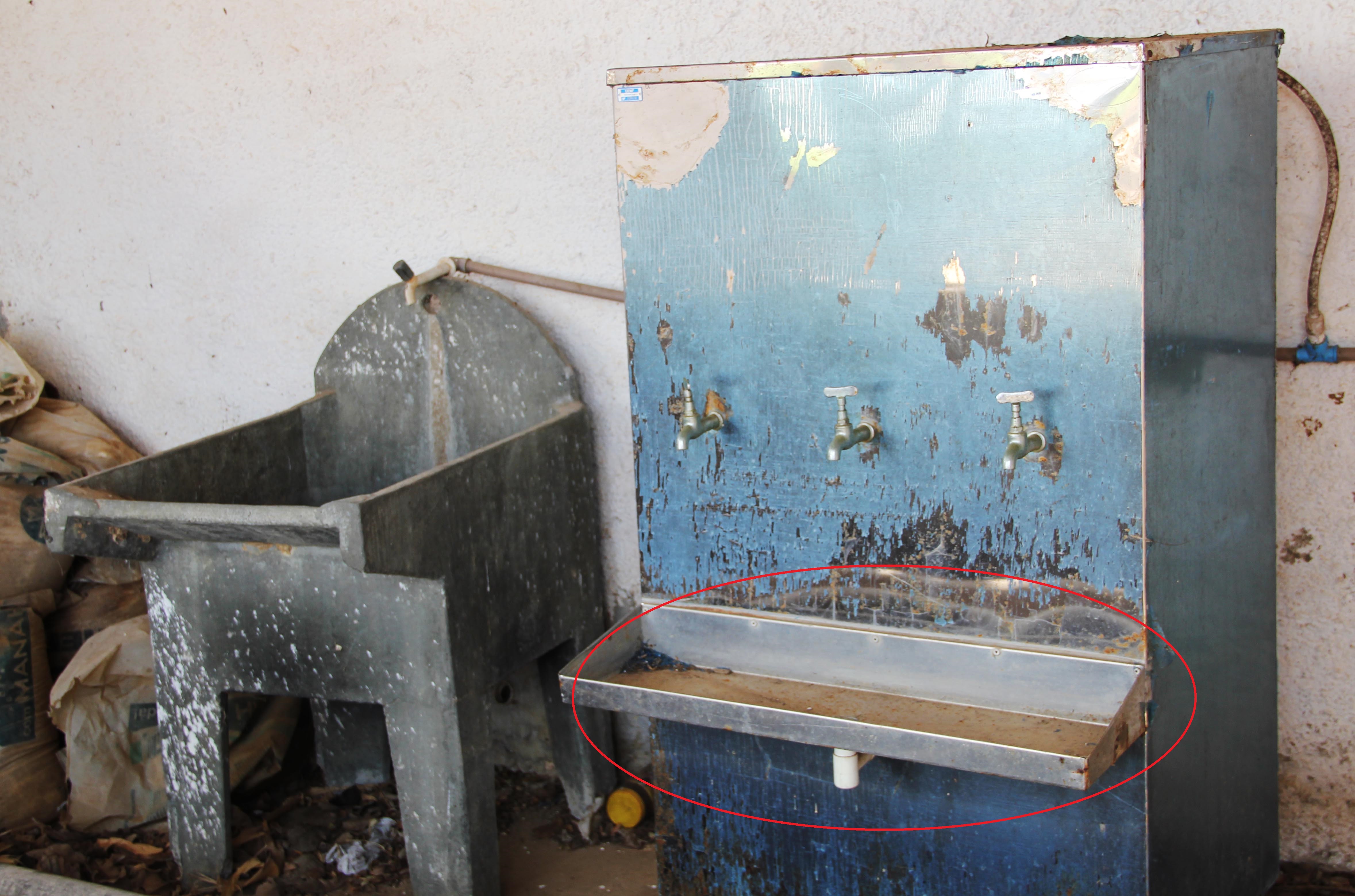 Bebedouro e tanque sem utilização porque a reitoria da UENF nunca realizou a ligação dos mesmos com a rede de abastecimento de água.