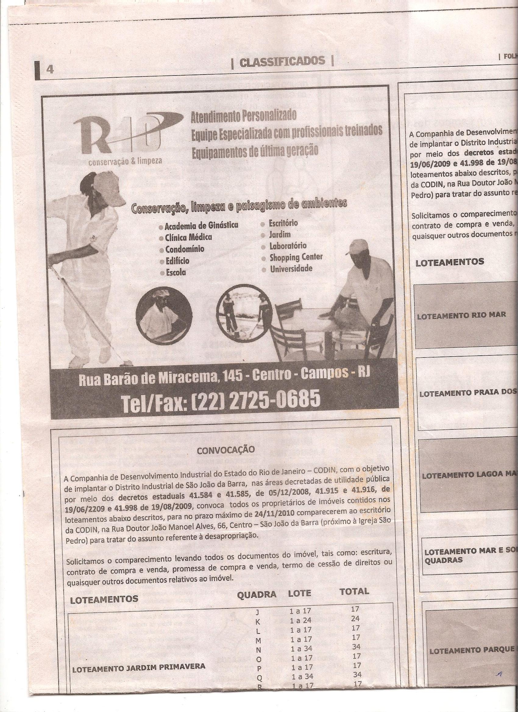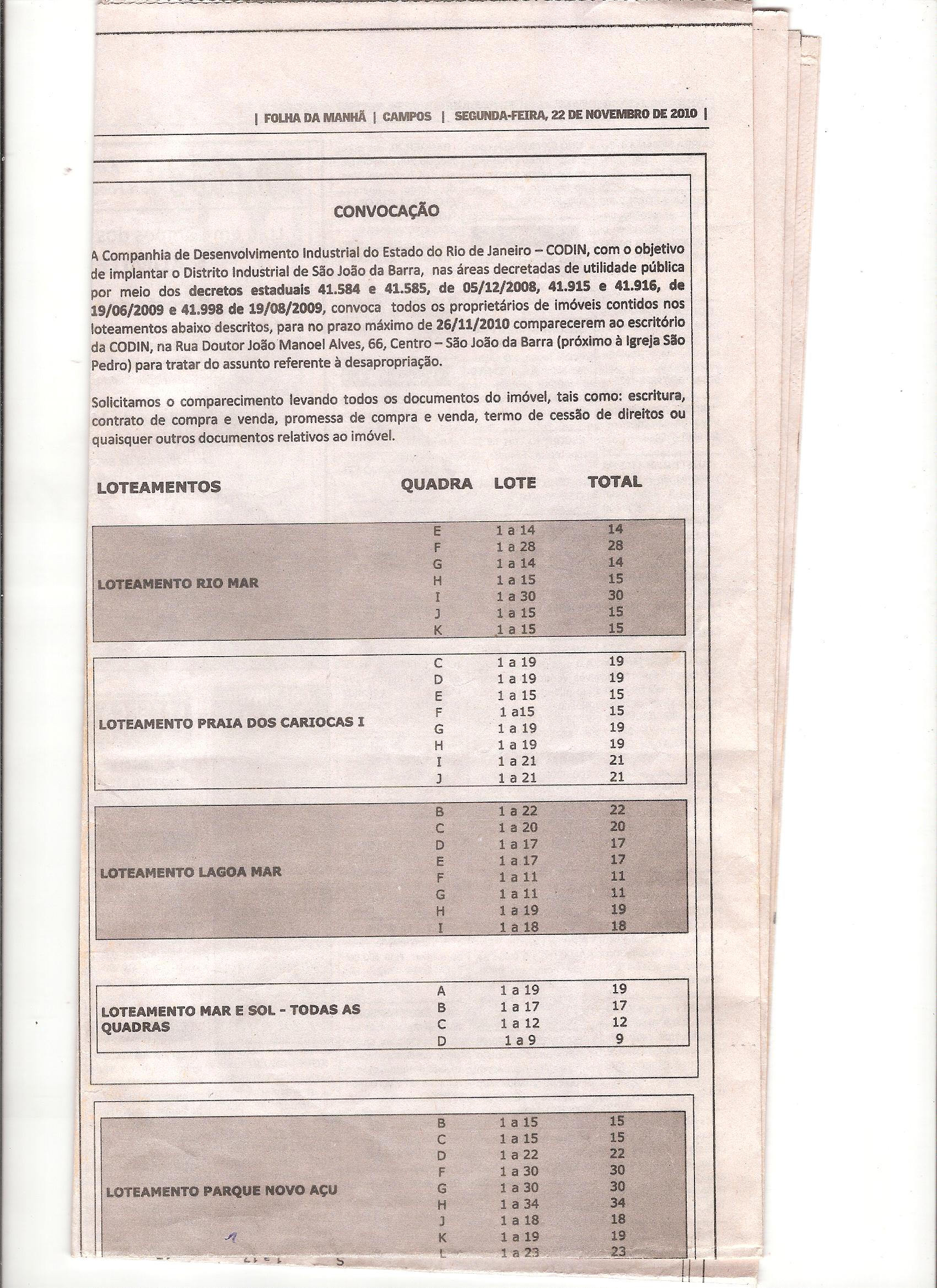 Depois da postagem que fiz hoje sobre a situação das desapropriações feitas pela Companhia de Desenvolvimento Industrial do Rio de Janeiro (CODIN) na localidade de Barra do Açu para beneficiar o conglomerado econômico do ex-bilionário Eike Batista, outro leitor do blog entrou em contato para apresentar mais detalhes da problemática que aflige hoje em torno de 2.000 proprietários de lotes urbanos naquela localidade.
