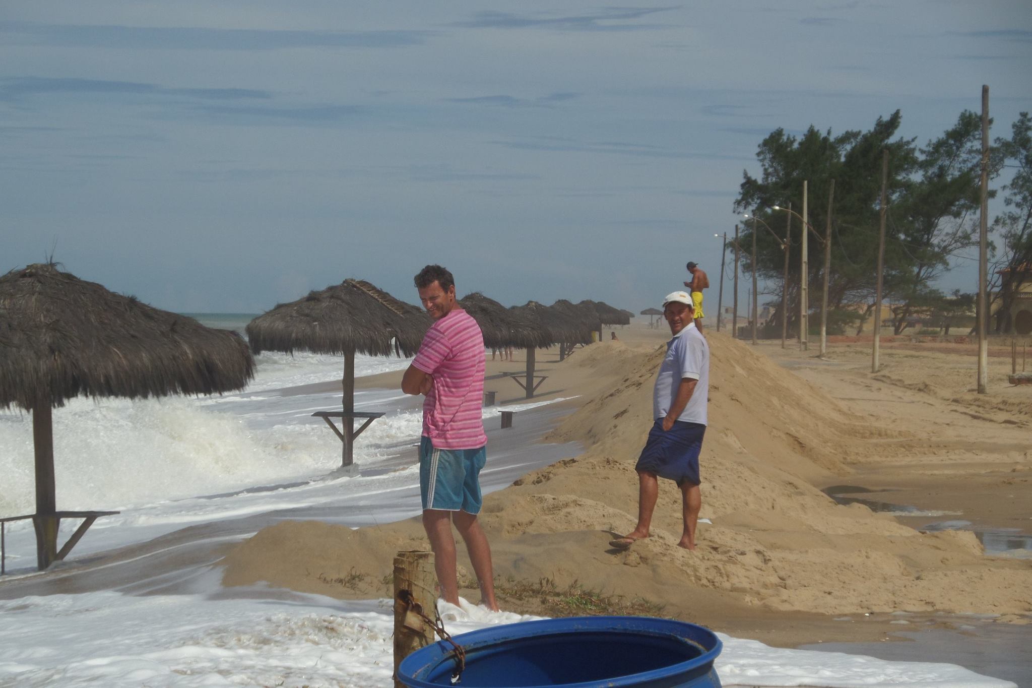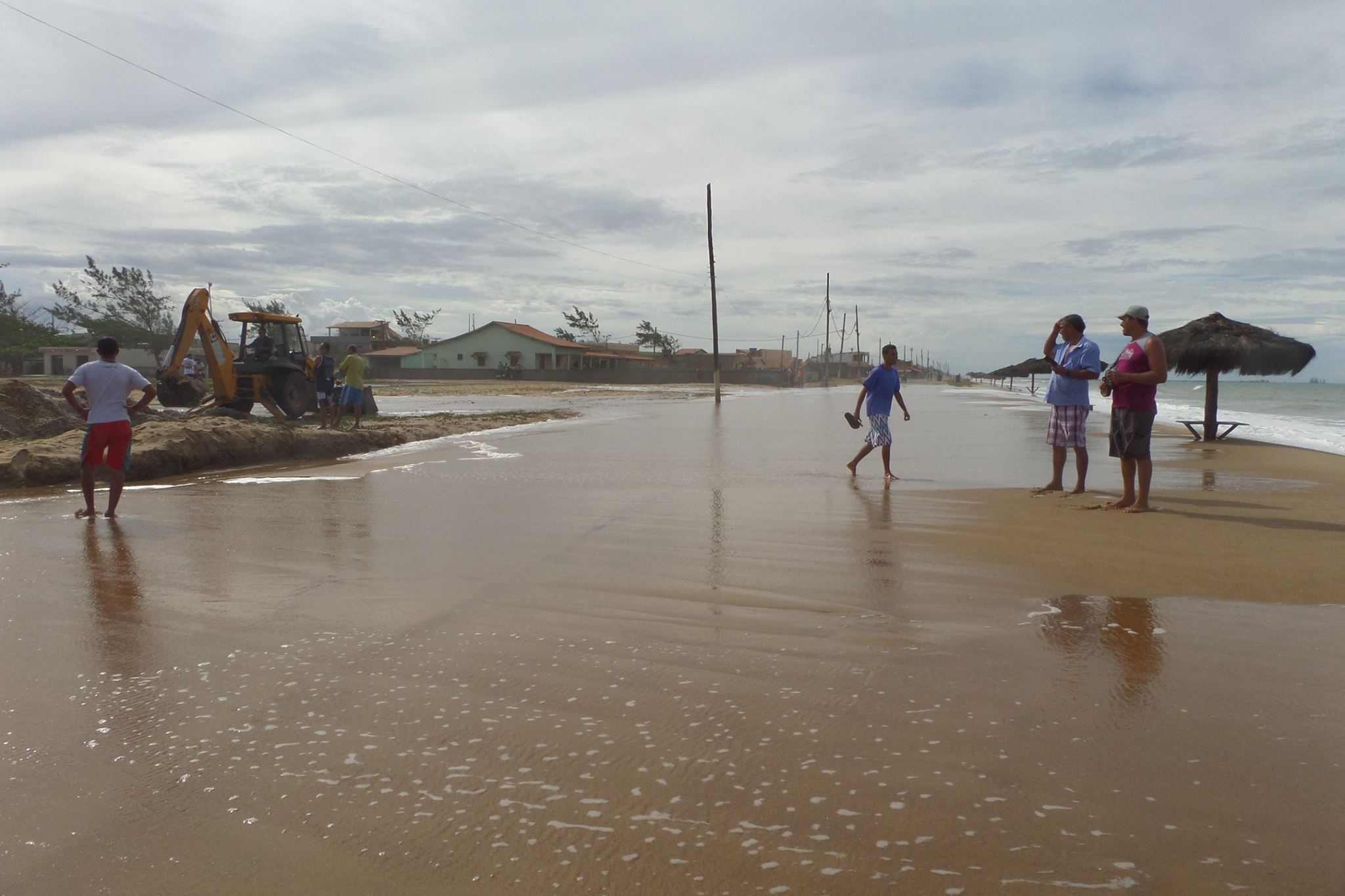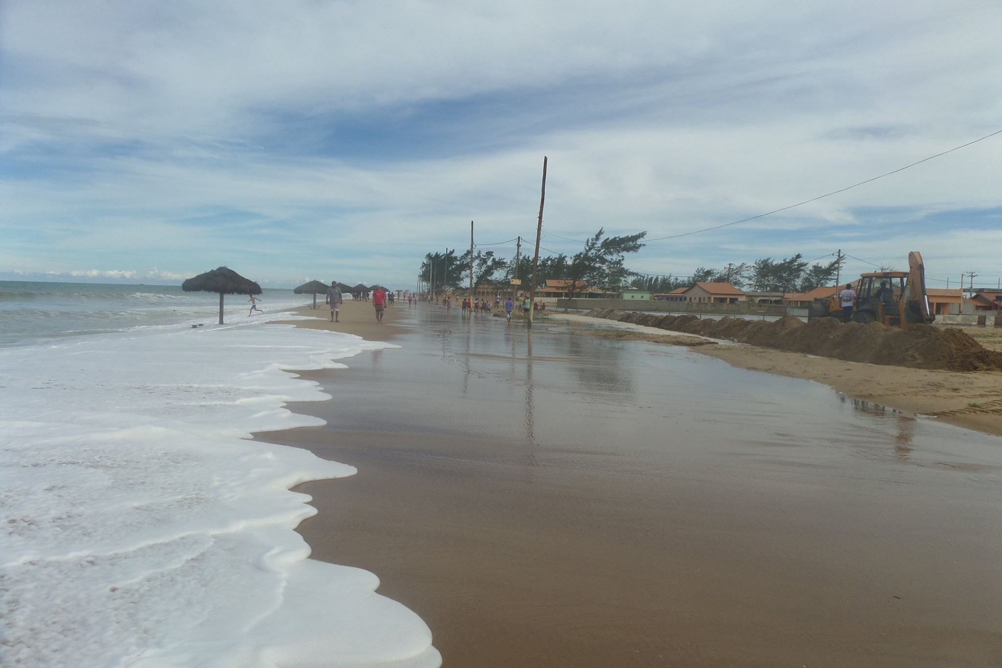 Os moradores da Barra do Açu continuam vivendo momentos de aflição com a maré alta que está jogando muita água dentro das ruas da localidade. No dia de hoje, a Prefeitura Municipal de São João da Barra tentou realizar uma ação improvisada para criar barreiras de areia na orla da Praia do Açu para invadir o avanço das águas, mas a forte do mar já derrubou tudo o que foi feito de manhã ainda no início desta 6a. feira (20/03).