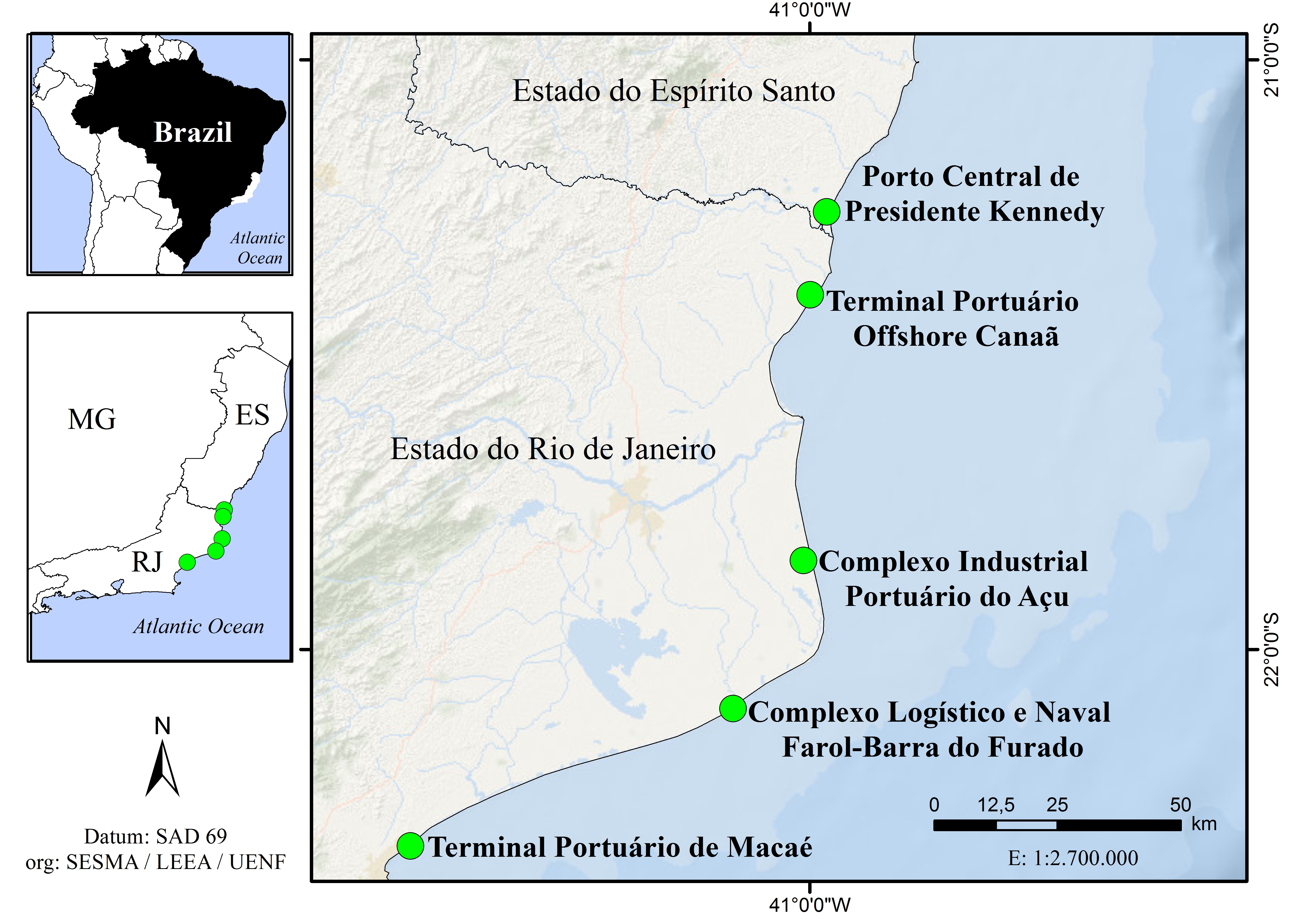 Eu espero que essa postura da Prumo Logística de negar responsabilidade do Porto do Açu na destruição da Praia do Açu não se repita em relação aos gestores do Porto de Barra do Furado. É que como mostrou a reportagem do O DIÁRIO, esse efeito combinado das duas estruturas portuárias já estão causando uma forte sinergia que com características fortemente destrutivas. Para piorar essa situação, outras estruturas portuárias estão planejadas para o Norte Fluminense e para o Sul Capixaba (ver mapa abaixo), o que poderá ampliar ainda mais um problema que não pode continuar a ser ignorado pelas autoridades públicas e corporações privadas.