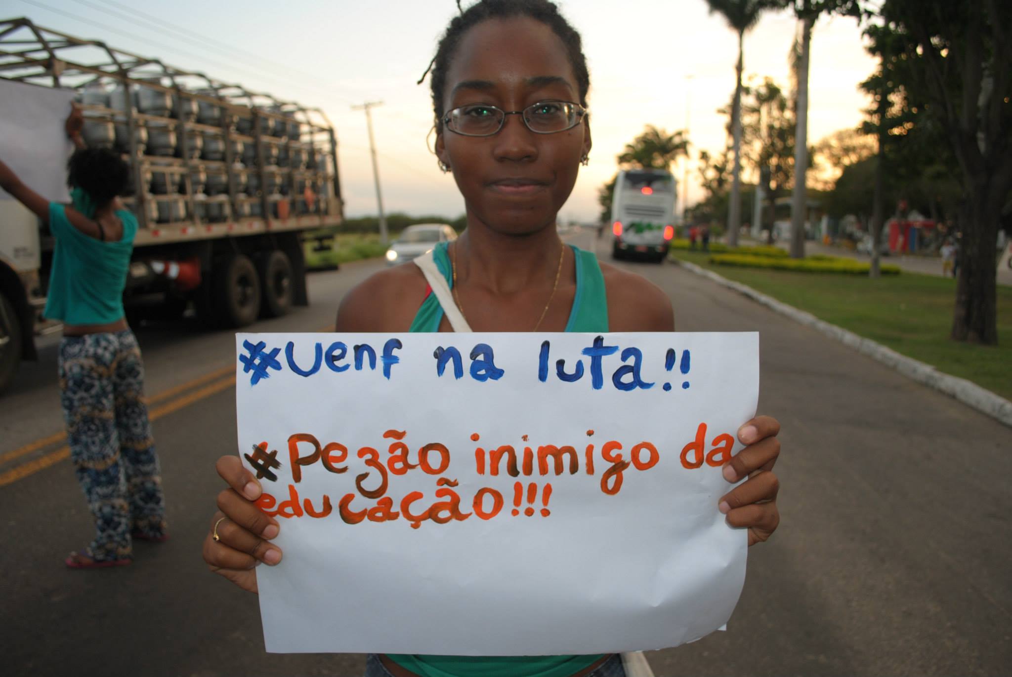 Apesar da mídia local ter majoritariamente ignorado o fato, estudantes da UENF trancaram a BR-101 no trecho que passa pelo rodoviária de Campos dos Goytacazes para protestar contra a falta de pagamento de bolsas acadêmicas que já entra no terceiro mês. A situação das bolsas é apenas a ponta do iceberg da greve crise financeira que está sendo imposta na universidade pelos cortes orçamentários realizados pelo (des) governo Pezão.