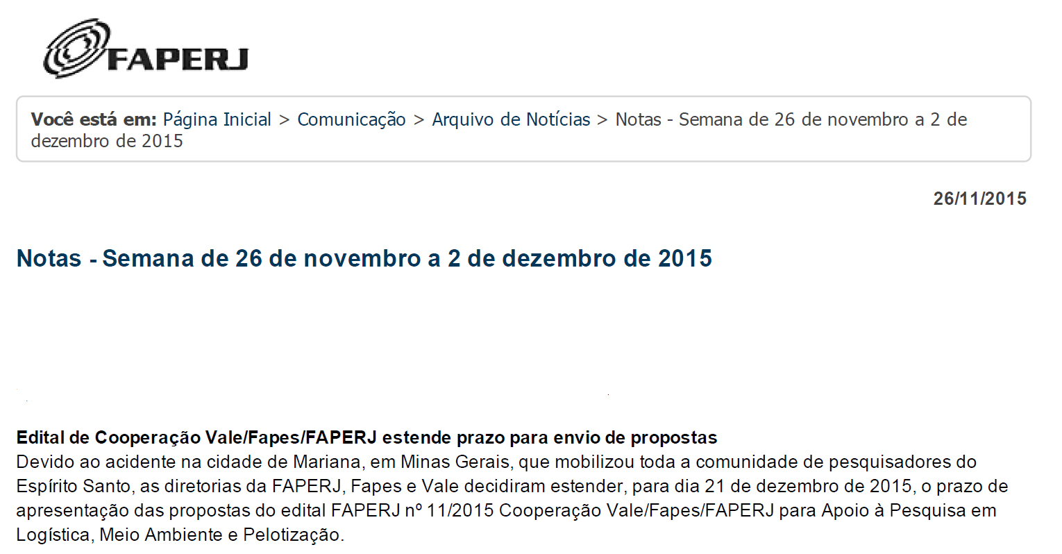 Mas entre os perdedores já se pode incluir a comunidade científica que depende do aporte continuado de recursos via a Fundação Carlos Chagas Filho de Amparo à Pesquisa do estado do Rio de Janeiro (FAPERJ). É que como mostra a mensagem eletrônica que está sendo enviada a todos os bolsistas da fundação, a data do pagamento das diferentes modalidades concedidas pela FAPERJ acaba de ser postergada para o dia 20 do mês seguinte ao mês de referência.