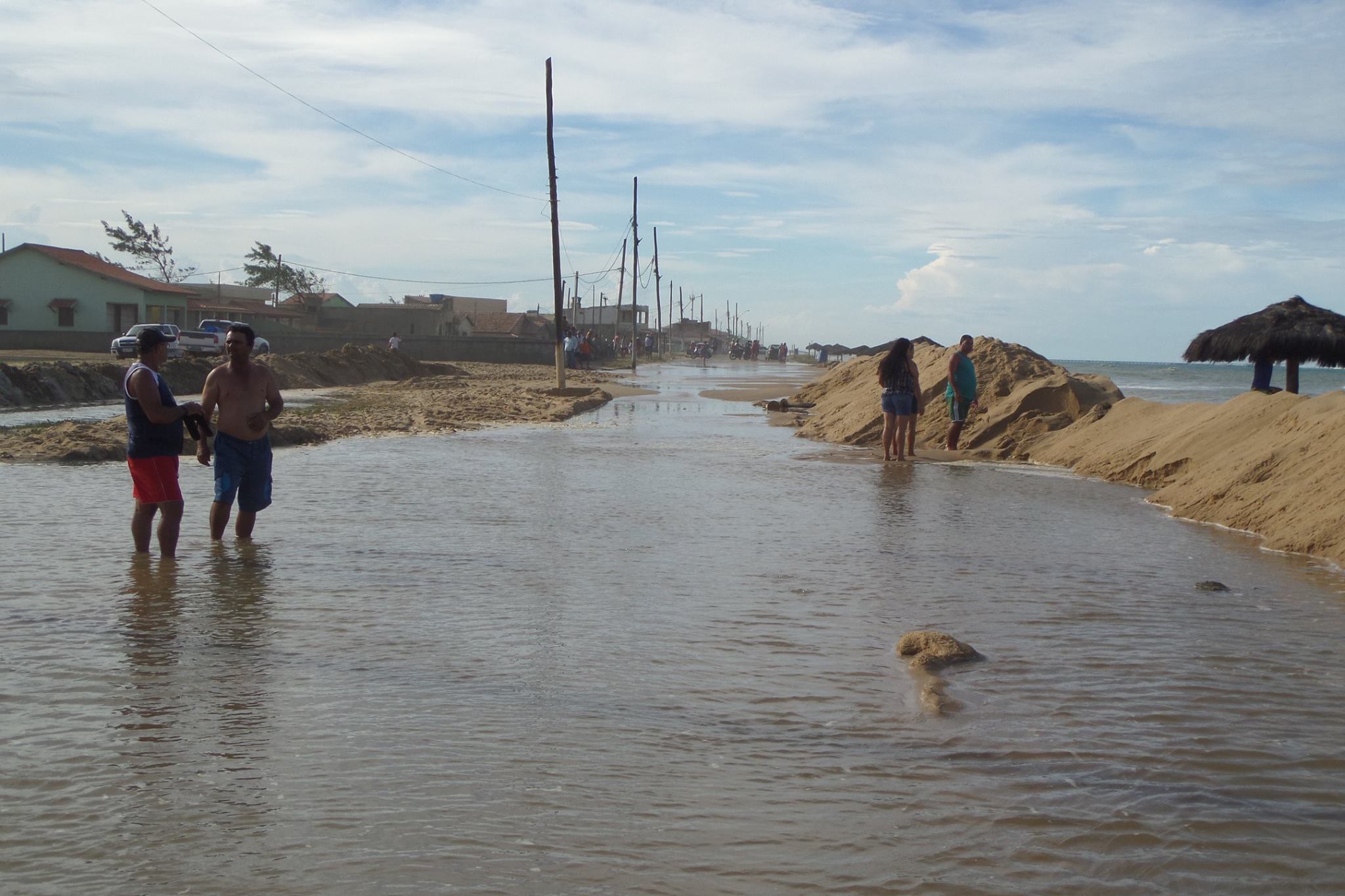Enquanto o rio Paraíba do Sul atinge a maior seca da história, o mar avança na praia do Açu, em São João da Barra. De acordo com a Defesa Civil do município, na quarta-feira (24) à tarde havia ainda a possibilidade da água invadir casas e comércios da rua Principal, como aconteceu na terça-feira (23), o que não aconteceu, para alívio da população local. Os cerca de 2 mil moradores da comunidade que dá nome ao Porto do Açu está cada vez mais preocupada. O fenômeno que vem se tornando constante nunca ocorreu antes. A água invadiu a rua da localidade por volta das 15h. Após uma hora de cheia, no momento de maré mais baixa, o mar deixou de jogar água na via. Até a manhã de quarta, a rua estava com muita lama. Especialistas apresentam diferentes análises sobre as possíveis causas para o problema. Uma delas seria consequência da construção dos terminais do Porto do Açu. Os moradores da localidade cobram a mobilização das autoridades para que os técnicos ajam sobre o problema e ao mesmo tempo identifiquem as causas. Quarta à tarde, após receber denúncias de moradores e saber da situação pela imprensa, uma equipe do Ministério Público Federal foi enviada pelo procurador Eduardo Santos Oliveira ao Açu para fazer se inteirar da situação, para definir se o órgão vai intervir.