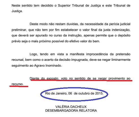 Pois bem, no dia de ontem o Tribunal de Justiça publicou novo indeferimento aos pleitos da Codin em relação ao processo e 0044578-24.2015.8.19.0000. A leitura desta decisão me parece obrigatória para todos aqueles que se interessam pelas facetas obscuras que cercam o processo de desapropriação de terras comandado pela Codin, o qual suscitou um mercado paralelo de aquisição de terras desapropriadas via intervenção direta da LLX Operações Portuárias (hoje conhecida como Prumo Logística Global.