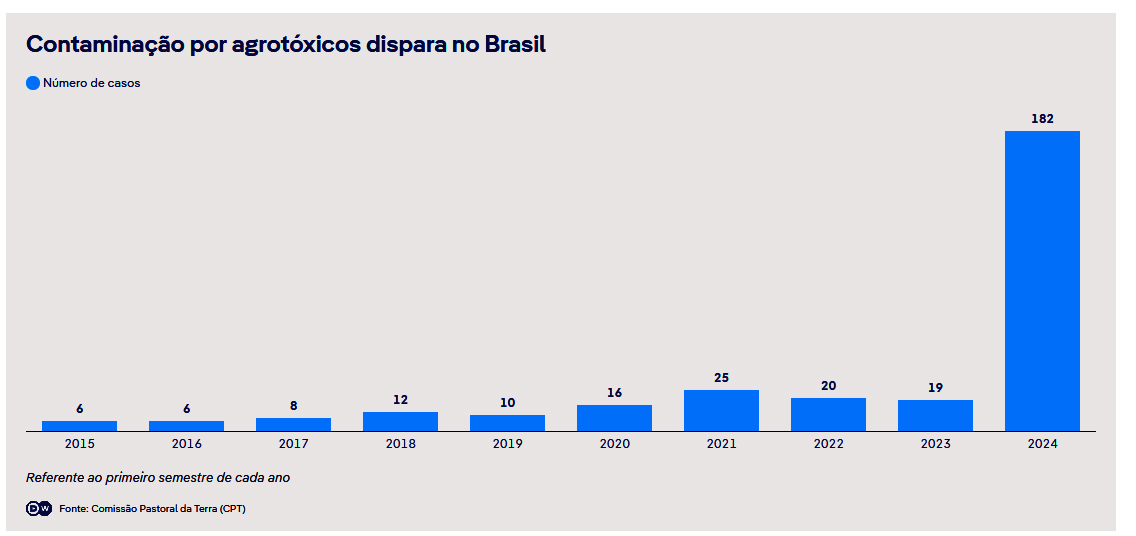 As estimativas do setor são de que 25% dos agrotóxicos que circulam no Brasil sejam irregulares. Em 2023, a Polícia Federal apreendeu 575 toneladas destes produtos, quase 180% mais que em 2022. Em 2023, o Ministério da Agricultura apreendeu 422,9 toneladas e a Polícia Rodoviária Federal (PRF) 195,7 toneladas.