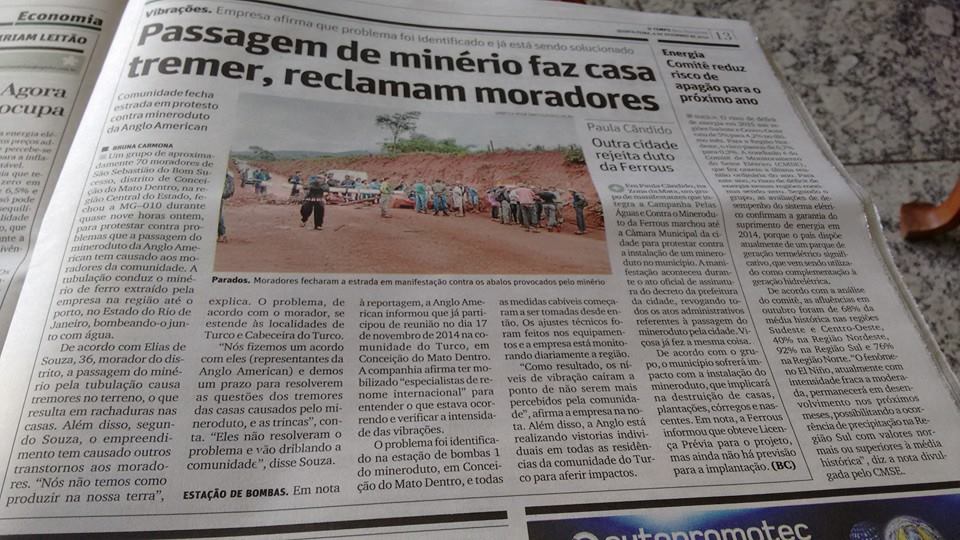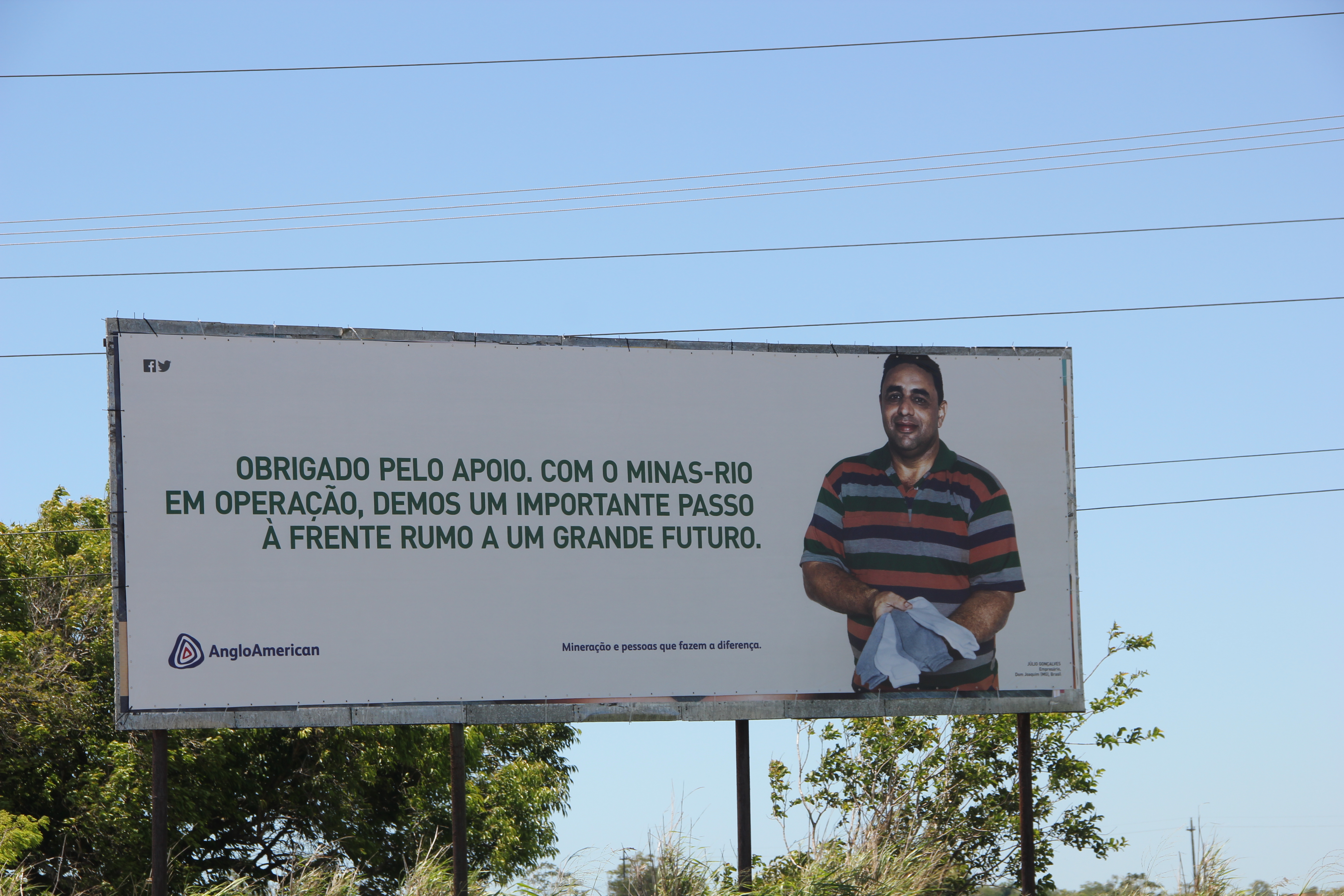 Em 2008, a multinacional Anglo-American comprou do grupo MMX, pertencente a Eike Batista, o Projeto Minas-Rio. Dois anos depois, distribuiu gratuitamente nessas cidades um material em que afirmava seu compromisso com as comunidades impactadas e o meio ambiente: “Sabemos que a chegada de um empreendimento minerário a uma localidade mexe com a vida das pessoas, com o ritmo das cidades e com o meio ambiente. Por outro lado, também gera recursos que movimentam a economia local, viabilizam investimentos em saúde, educação e infraestrutura, criam empregos, criam oportunidades de novos negócios, programas produtivos com as comunidades, abrem perspectivas para a população, ampliam horizontes. Daqui a algum tempo, nossas famílias irão se mudar para a região. Por isso, também é nosso interesse pessoal ver a cidade crescer e prosperar”, diz o texto. Ele segue: “Queremos que a implantação do Projeto Minas-Rio venha acompanhada de crescimento ordenado e inteligente, que considere não só os aspectoseconômicos, mas também atenda às necessidades de preservação dos recursos da natureza, resgate das manifestações culturais, respeito às individualidades e atenção às comunidades. Para isso, além de cumprir as condicionantes estabelecidas pelo órgão ambiental, vamos utilizar todo o conhecimento e experiência de uma empresa que tem 93 anos, atuação global, presença em 30 países, valores sólidos e compromisso com o desenvolvimento sustentável. Vamos nos valer também do diálogo permanente com as comunidades que nos acolhem, autoridades, órgãos governamentais, ONGs, representantes da sociedade civil das comunidades e demais parceiros”.