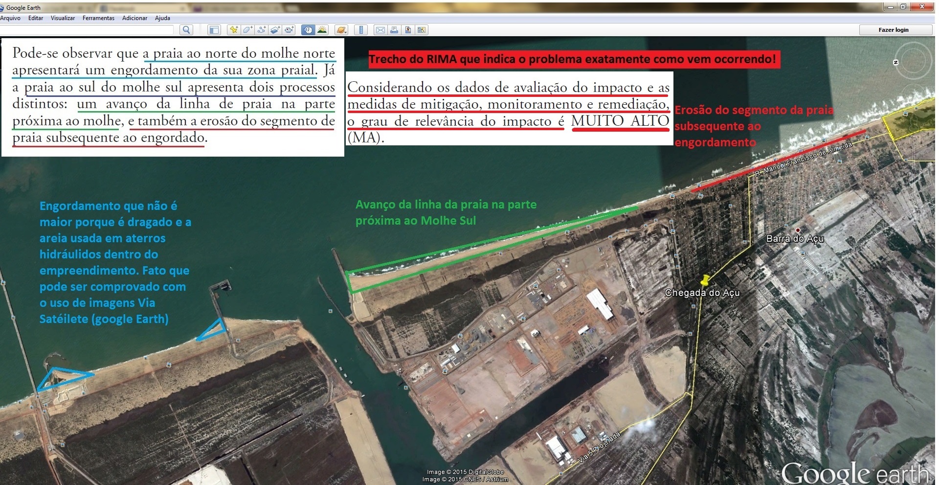 E o conteúdo da narrativa, apesar de duro, me parece apontar para as várias incongruências que cercam não apenas o processo de licenciamento, mas principalmente à omissão efetiva do poder público municipal (executivo e legislativo) acerca dos problemas sociais e ambientais que cercam a implantação e ampliação do Complexo Industrial Portuário do Açu.