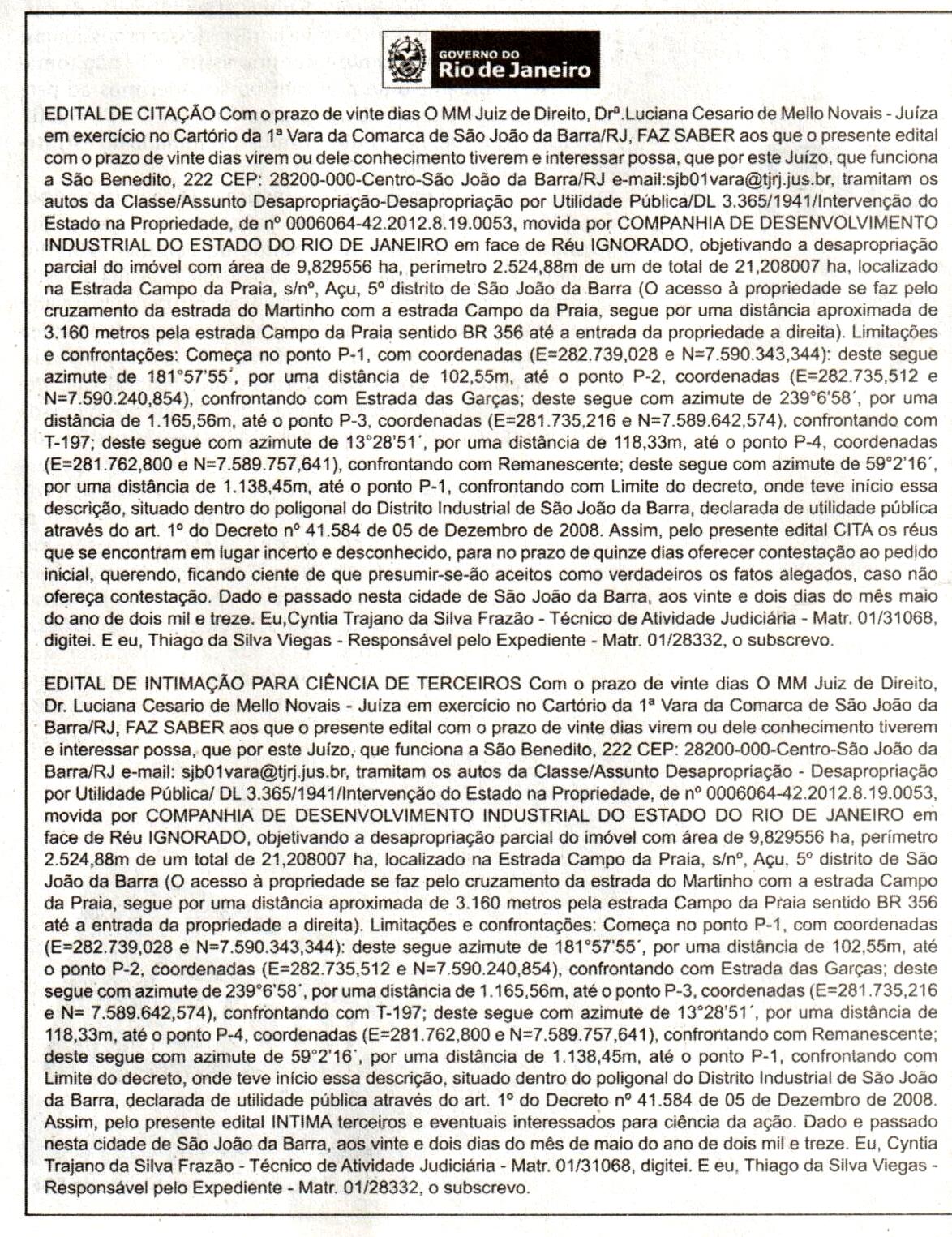 Tem gente que acha que eu implico com o Porto do Açu, mas a verdade é que não me opus ao empreendimento, apenas à forma adotada por Eike Batista e pela CODIN para instalá-lo no V Distrito de São João da Barra. É que na forma adotada, centenas de famílias de trabalhadores rurais tiveram suas terras subtraídas e muitas ainda esperam o pagamento dos valores miseráveis que o (des) governo de Sérgio Cabral/Pezão decidiu que elas valiam.
