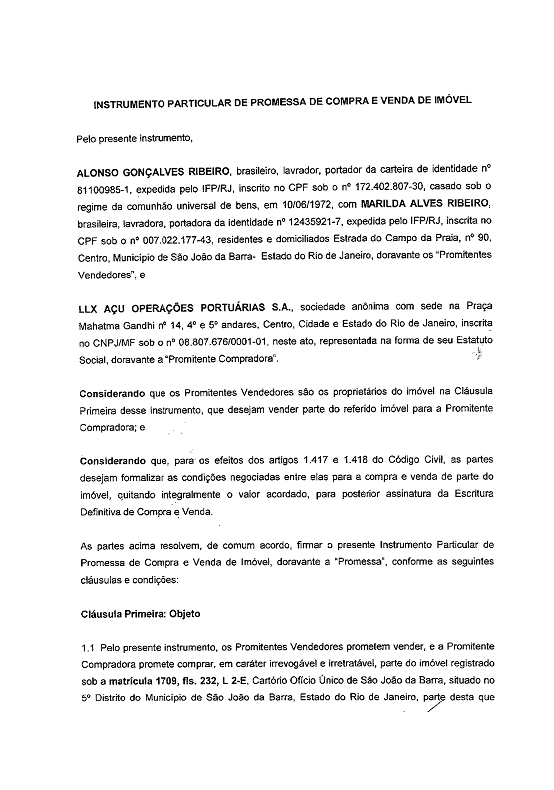 O interessante (na falta de melhor palavra) a que a juíza que então respondia pelo caso, apesar de notar problemas na concessão total do pedido feito pela Codin, aceitou incluir a LL(X) Açu como parte do pólo passivo, tendo como base o contrato de compra e venda (de gaveta) apresentado pela empresa!