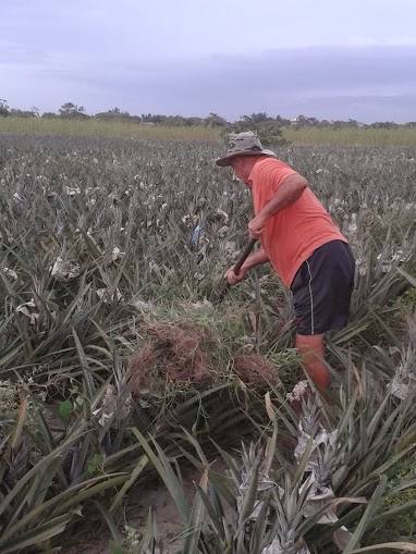 Chegando na propriedade que restou ao Sr.Reinaldo, um homem nos seus 78 anos, encontrei-o trabalhando num plantio de de abacaxi que possui atrás de sua residência.