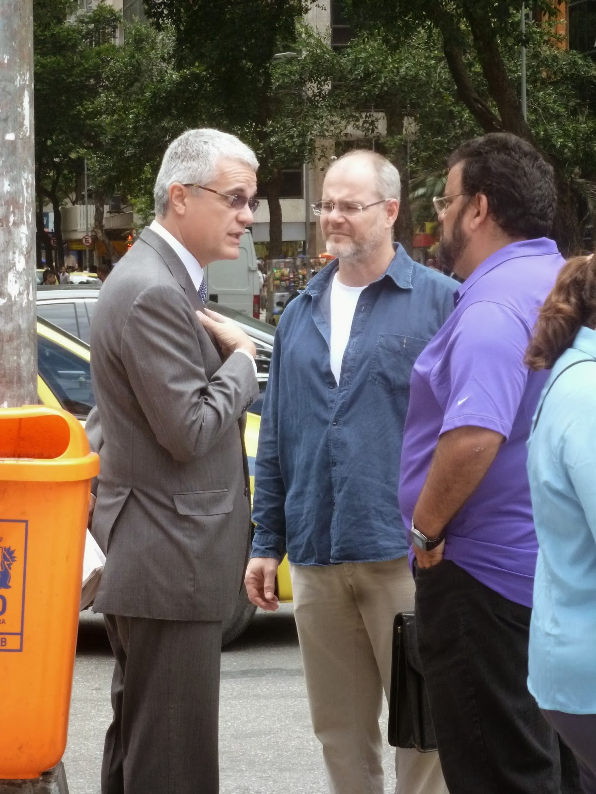 Por coincidência, entre um prédio e outro da ALERJ, encontramos o Secretário de Planejamento e Gestão, Sr. Sérgio Rui, provavelmente à caminho de seu almoço. Não nos furtamos a abordar o Secretário, de maneira firme e gentil, questionando sobre o envio à ALERJ do Projeto de Lei sobre nossa DE. O Secretário tentou desviar, dizendo que nós não havíamos cumprido o acordo* firmado. Ao que retrucamos que havíamos sim aceito que o reajuste fosse concedido sob a forma de adicional, o que na nossa interpretação seria o ponto fundamental do tal acordo*. O Secretário afirmou então que o Projeto estava “em elaboração” (!?) junto com a SECTI, nos termos acordados* e que seria enviado em breve à ALERJ, porém sem data definida.