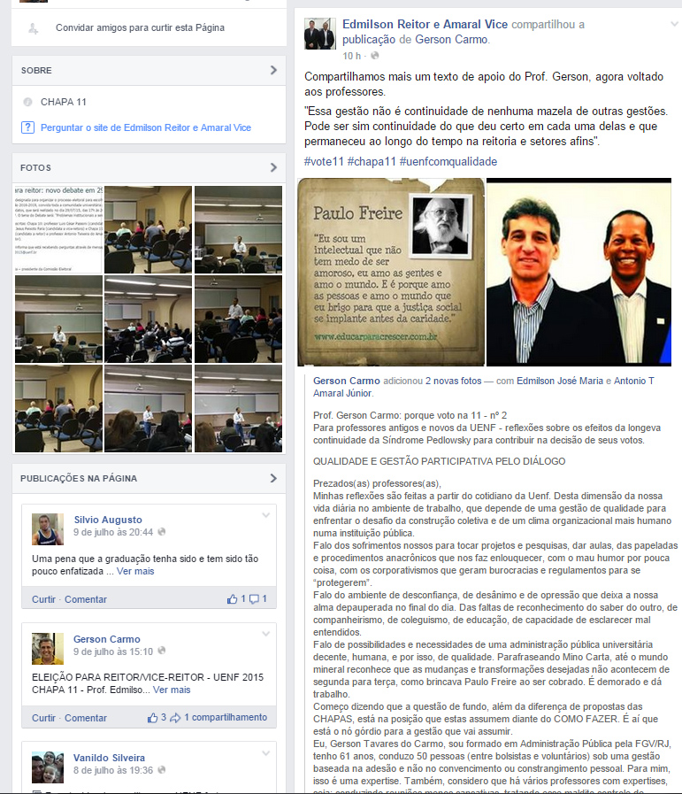 Por outro lado, há que se narrar aqui o sentimento que eu percebi entre a maioria das pessoas com que conversei no dia seguinte à vitória da chapa 10: alívio! É que mesmo entre pessoas que se sentiram compelidas, sabe-se lá por quais motivos, a vitória da dupla Luís Passoni e Teresa Peixoto é um sinal de que a Uenf poderá agora retomar os trilhos que foram abandonados por mais de uma década. E acima de tudo alívio porque deveremos agora ter uma universidade que realmente se pense como parte da região onde está localizada como um agente fundamental para a geração de respostas estratégicas. E só isso já deixa as pessoas bem aliviadas.